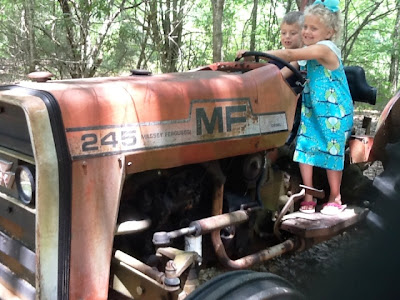 | Mason Man doing what comes naturally! MM loves "driving" Pop's tractor! |